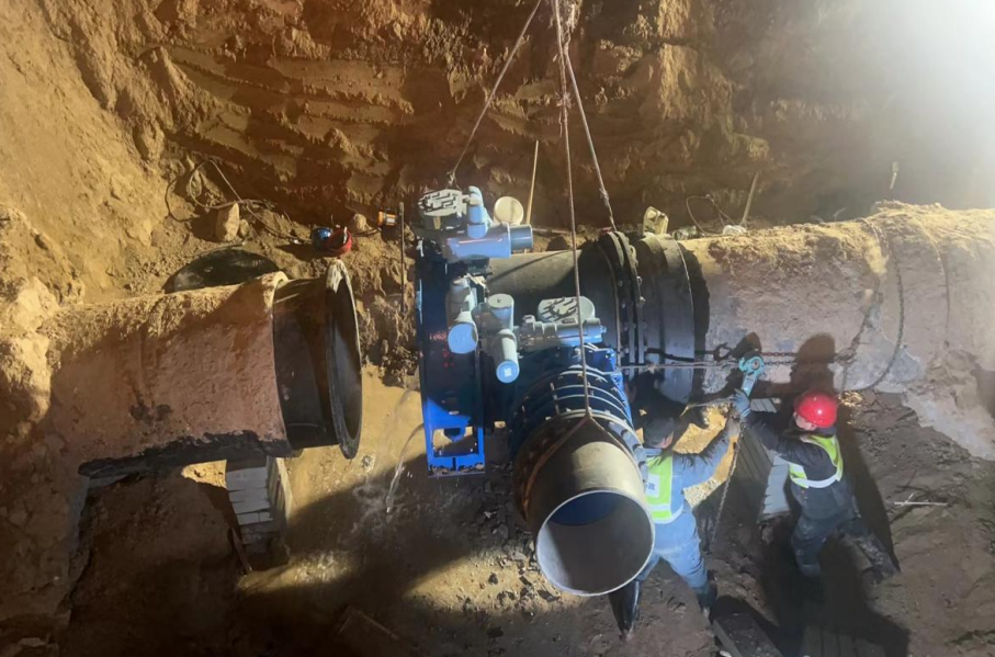 此次工程涉及DN1000及DN600的球墨鑄鐵管,施工難度大、技術(shù)要求高,但施工人員憑借著專業(yè)的技術(shù)和多年的經(jīng)驗,對整個施工過程進行了周密的計劃和部署,根據(jù)需要充足地準備了施工所需材料與設(shè)備,并聯(lián)系城市公司有限公司對外發(fā)布會停水相關(guān)通知,確保工程的順利進行。